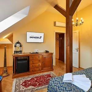 Das 4-Sterne-Salvator Hotel Karlsbad verfügt über 21 Zimmer und liegt ca. 5 Minuten zu Fuß vom Fluss Tepl entfernt. Das Hotel stellt WLAN in den Zimmern zur Verfügung.